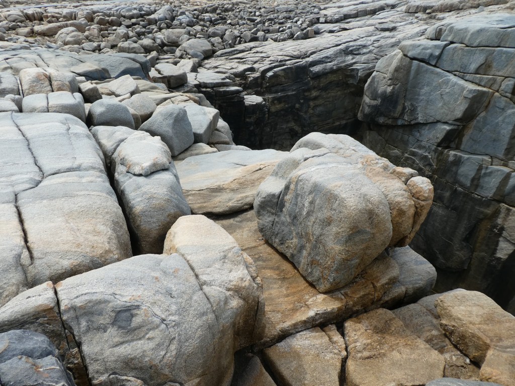 There are 2 distinctive rock types here that resemble granite, a common rock on the south coast- granodiorite and gneiss. The former is an igneous rock that is rich in silica while the latter is a metamorphic or changed rock, and pronounced as ‘nice’.